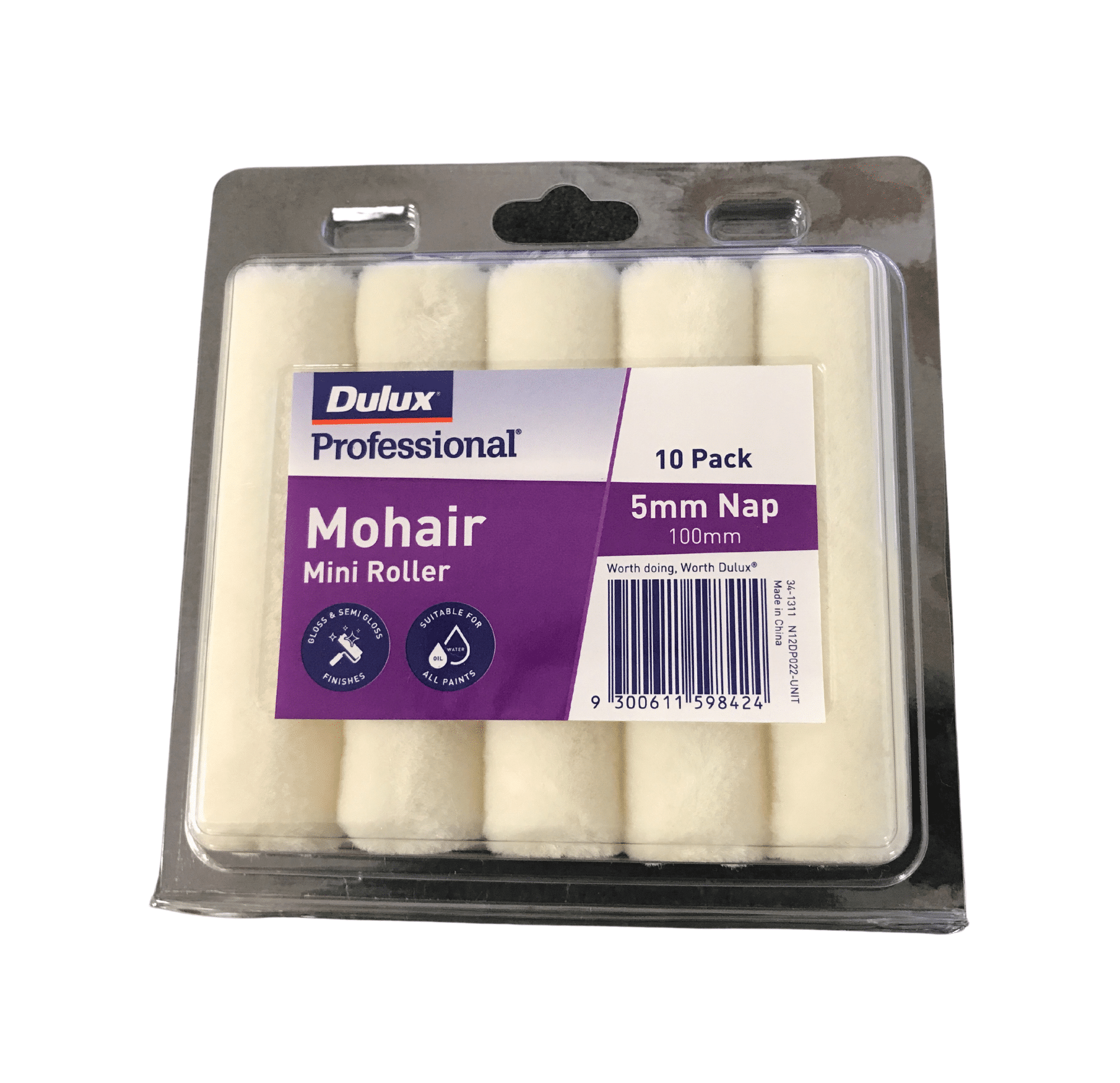Dulux Professional Mini rollers come in Foam, Fabric and Mohair covers.