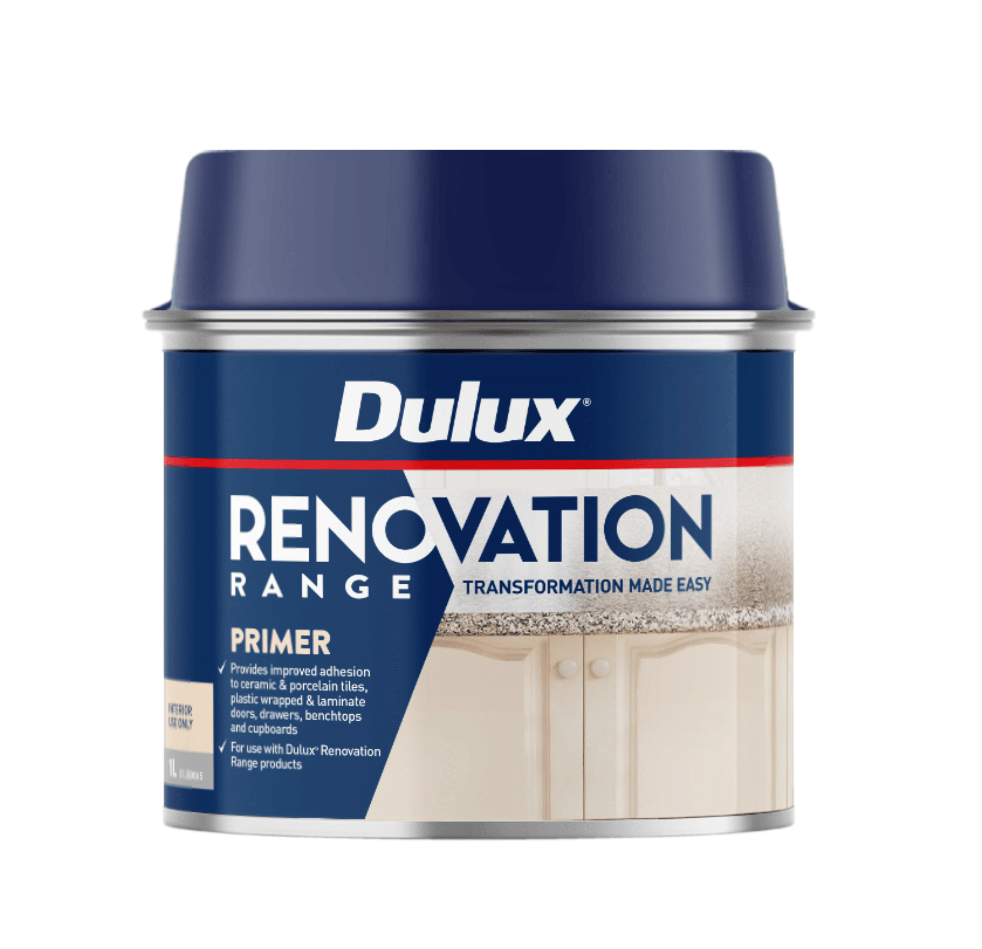 Dulux Renovation Range Primer is a revolutionary, water-based primer that is the perfect preparation product for ceramic and porcelain tiles, vinyl, laminate and plastic wrapped cabinet doors, drawers and benchtops.