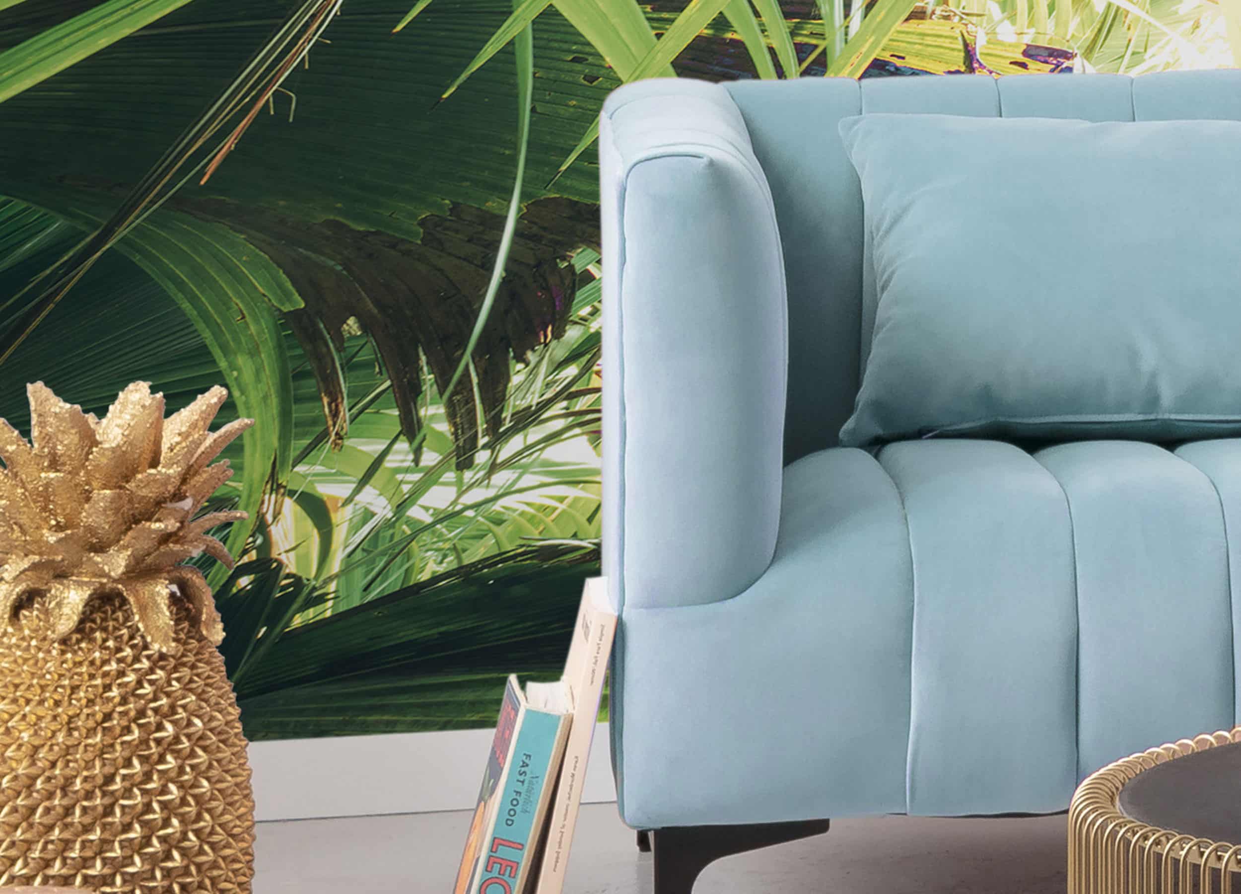 A canopy of bright green palm leaves hides the secrets of the jungle.