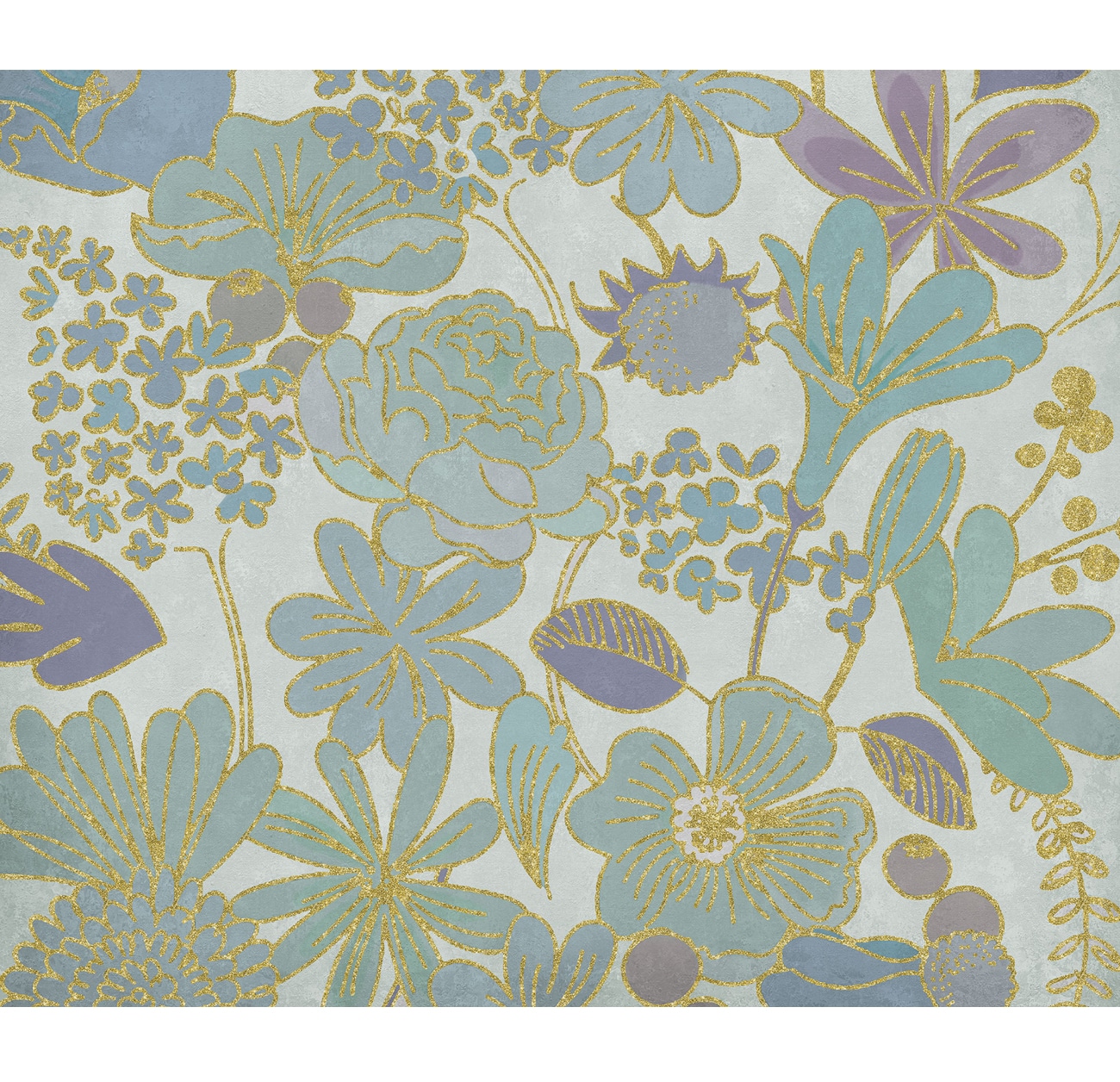 A delicate floral print that stays discreetly in the background without appearing conservative. The golden borders of the plants add a touch of glamour to this mural.