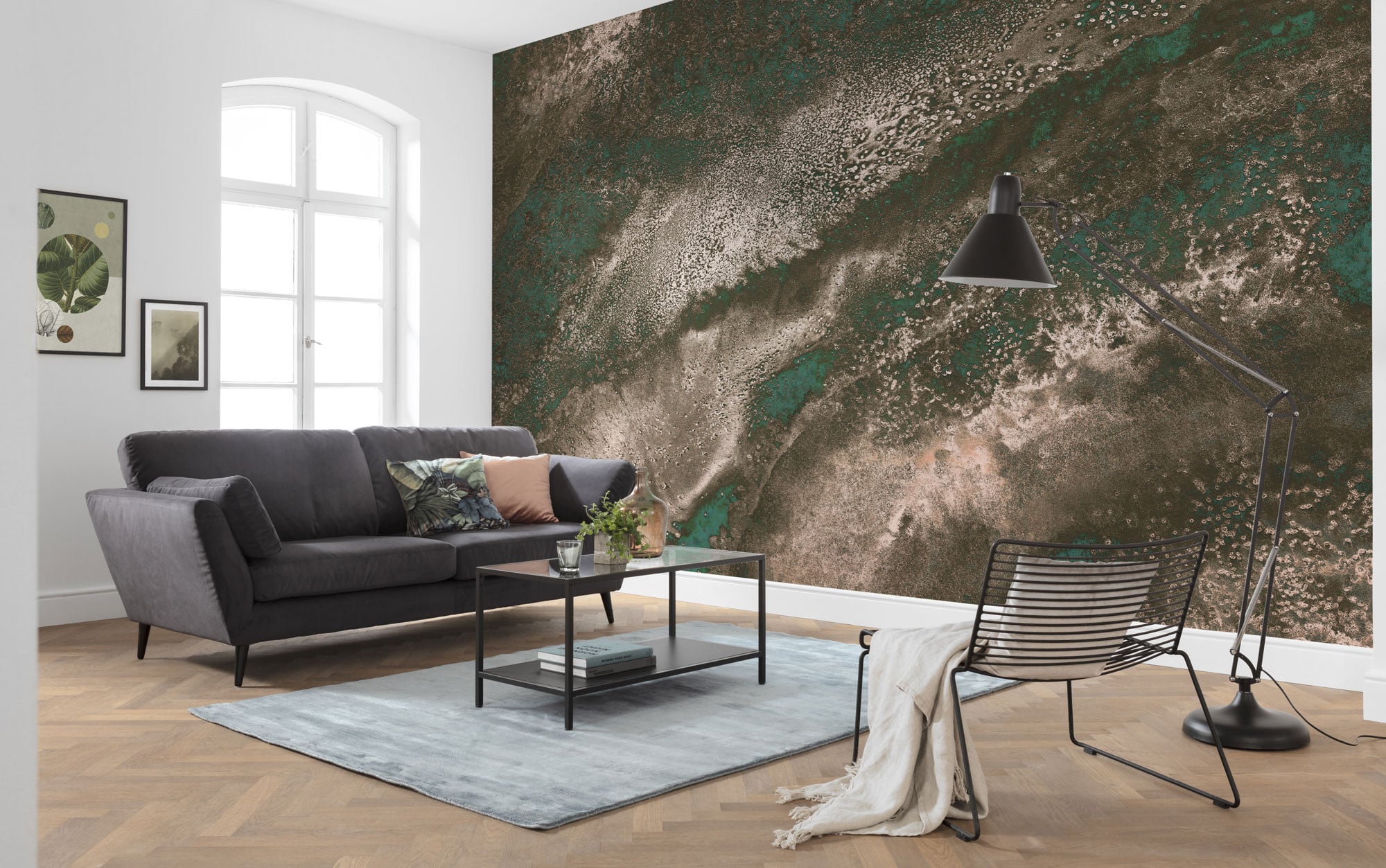 Precious metal for walls: This photomural with its acquired patina effect looks like an historic copper sculpture.